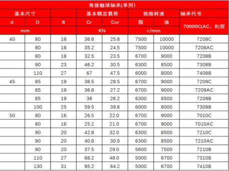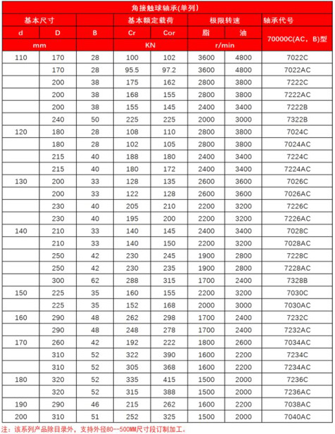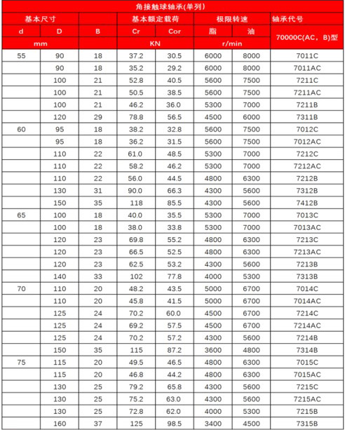 角接觸球軸承(單列)70000C(AC,B)型